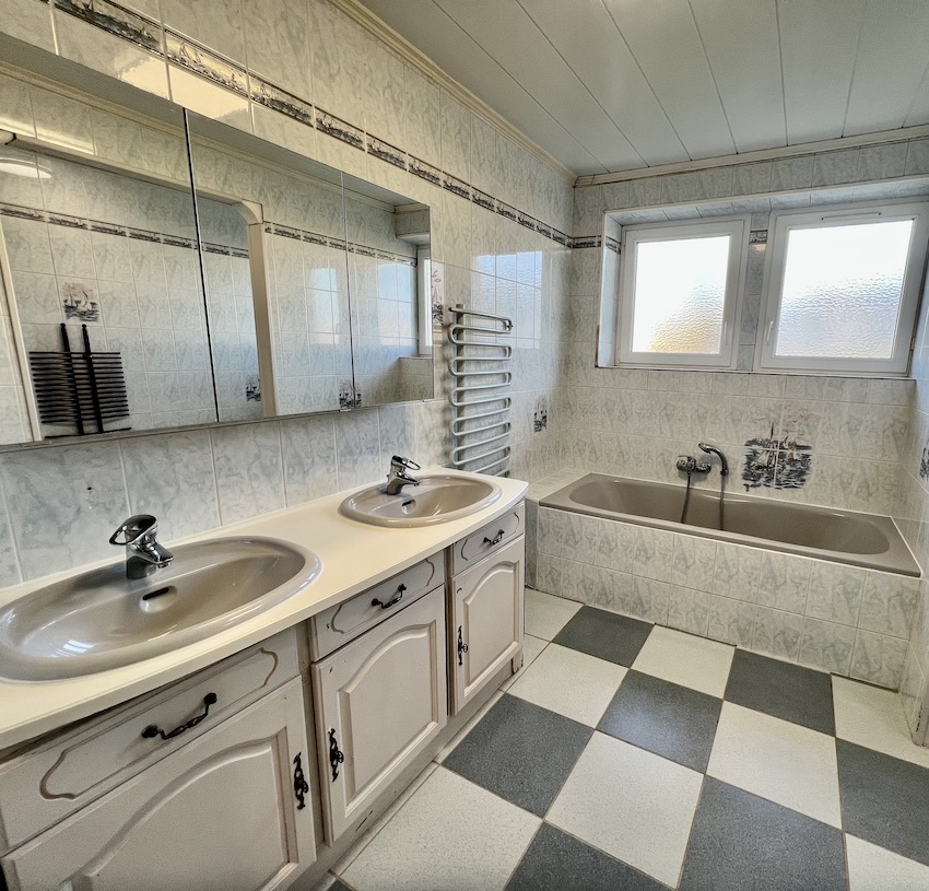 4 chambres (+-18m2 / 16m2 / 12m2 / 10m2), salle de bains avec douche et baignoire.