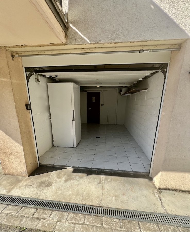 Garage Box fermé (1 emplacement intérieur), cave (+-2,80m2), Buanderie commune, Dépôt Poubelle.