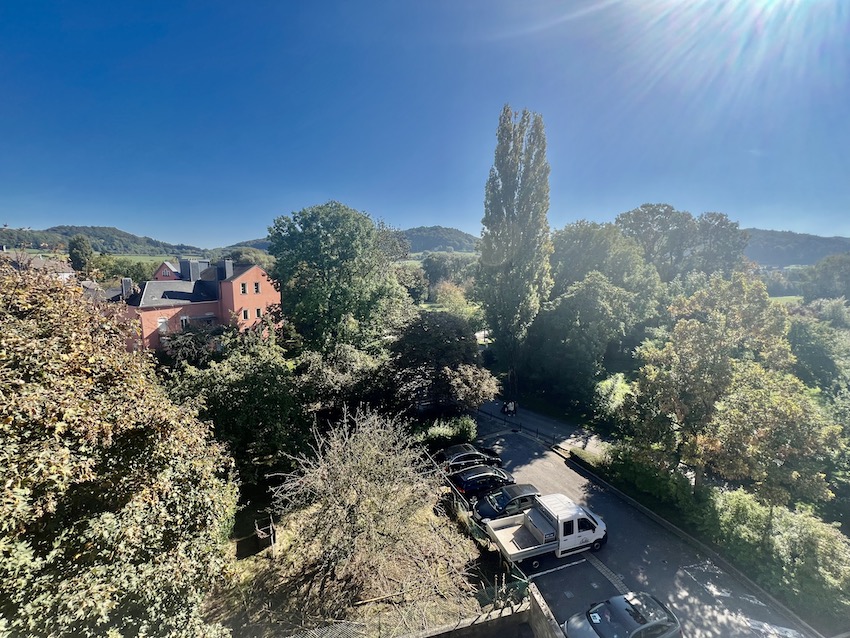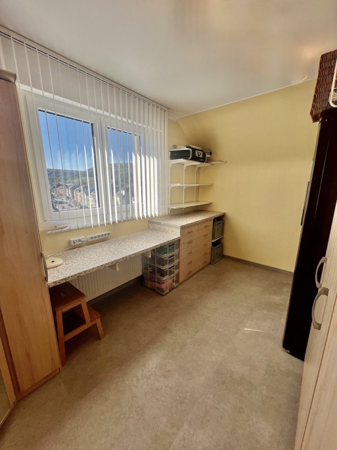 Hall d'entrée (+-5m2), WC séparé, Living très lumineux (+-25m2) avec accès Terrasse (+-3m2 / Exposition Sud-Est avec vue imprenable), cuisine équipée indépendante (2011 / Valeur 20.000 Euros), salle de douche (+-5m2), 3 chambres (+-14m2, 18m2, 12m2).