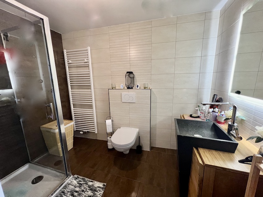 salle de douche italienne (+-4m2), 2 chambres (+-12m2, 10m2).