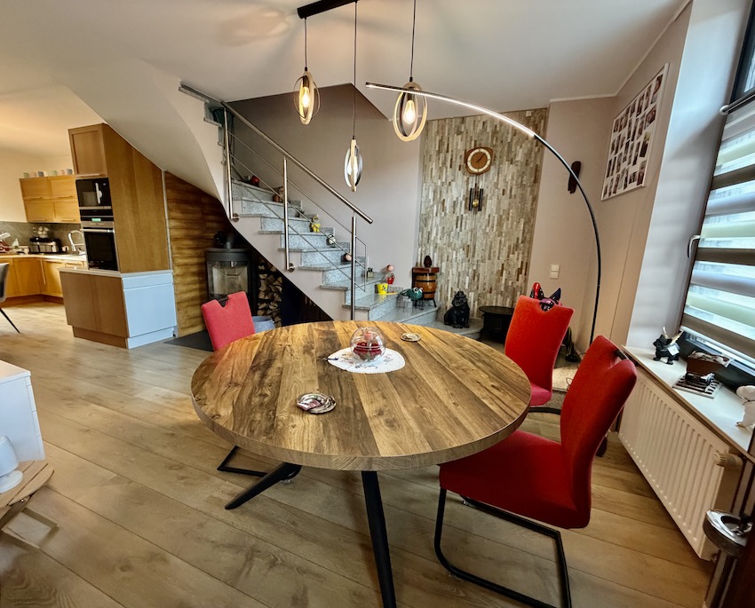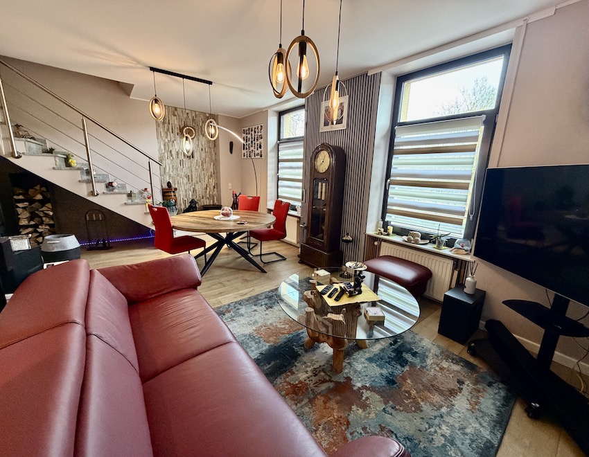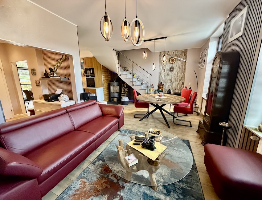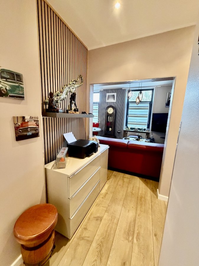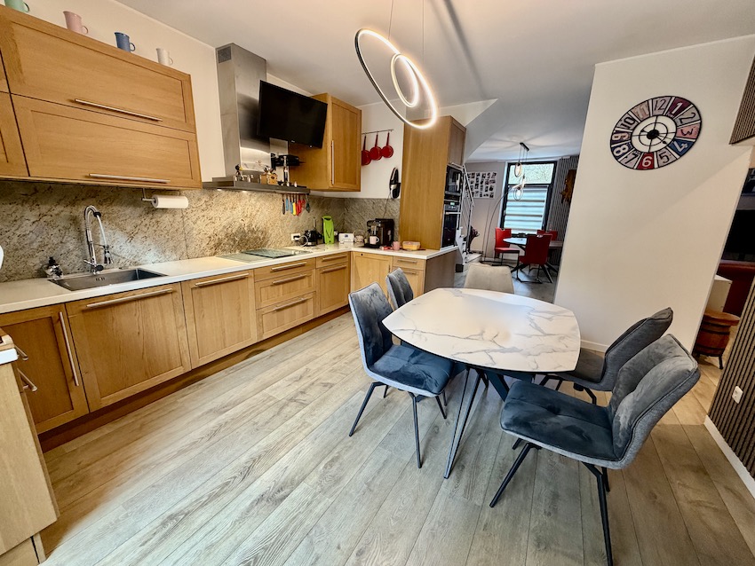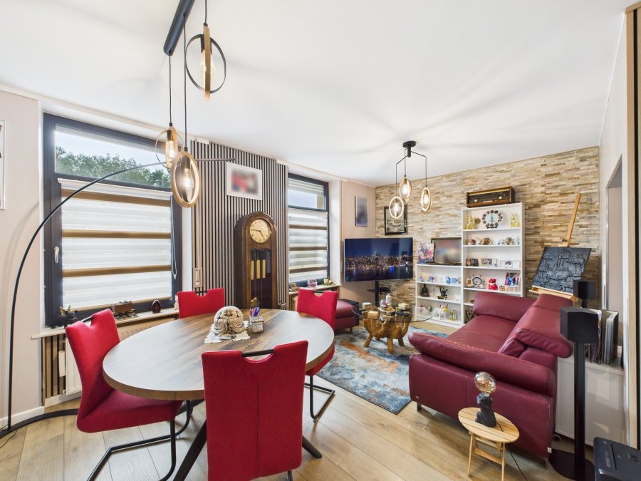 KAYL-TETANGE, 699.000 EurosMaisonette - Appartement (+-107,07m2) avec Jardin privé '(+-168m2 / Accès directe / Exposition Ouest) et Terrasse couverte (+-20m2) dans une résidence de 2 unités. Construction 1920. Rénovation complète 2020. Situation calme et verdoyante.