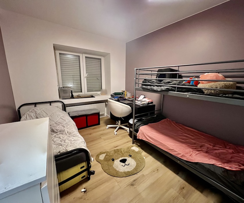 3 chambres (+-10m2 / 12m2 / 12m2), Hall de nuit (+-3m2), salle de douche (2015 / +-6m2)