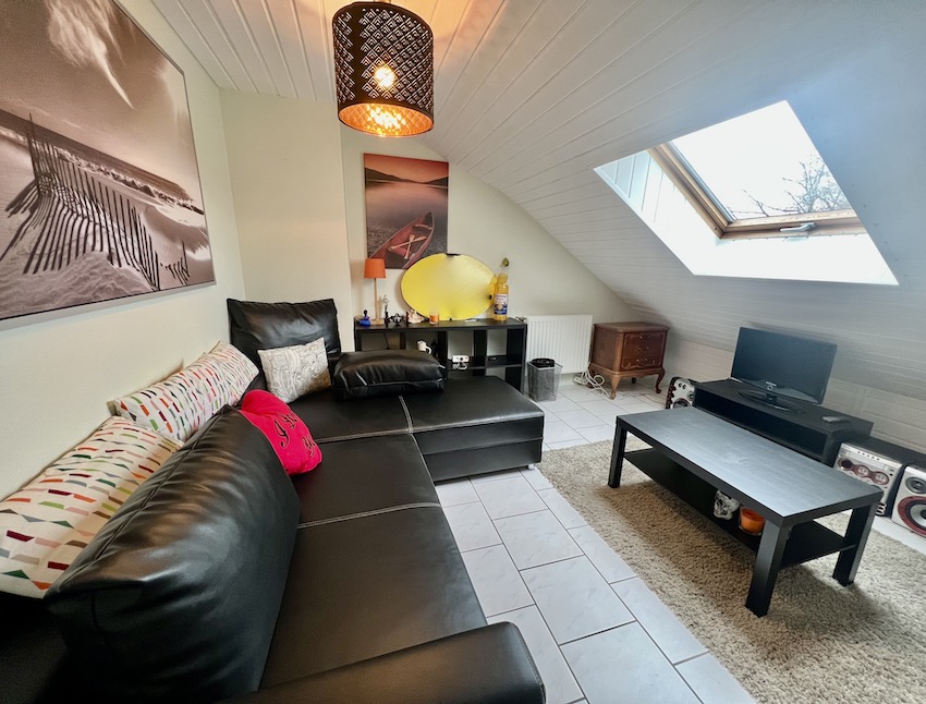 Living très lumineux et spacieux (+-25m2) avec feu ouvert, 1 chambre (+-16m2), salle de bains (+-12m2)