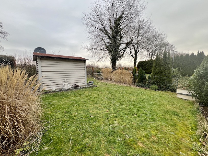 Hall d'entrée (+-6m2), cuisine équipée indépandante avec salle à manger (+-16m2 / 2020 / Valeur 25.000 Euros) donnant sur Terrasse (+-30m2 / Exposition Ouest) et Jardin clôturé (+-2 ares avec sa maisonette), WC séparé (+-2m2), Bureau ou chambre (+-12m2)