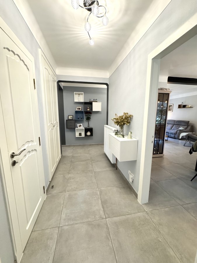 Dalles en Béton, Chauffage Gaz à condensation (2021), électricité refaite en 2007 et 2012, toiture isolée sous toiture, sanitaire de 2021, sols : carrelage et laminat, triple vitrage (2020) avec volets électriques et manuels, porte d'entrée et garage de 2008?