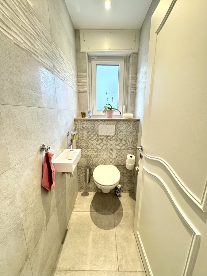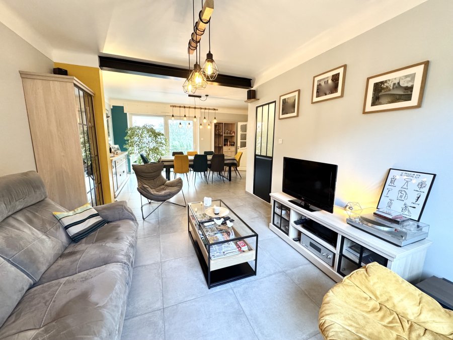 Dalles en Béton, Chauffage Gaz à condensation (2021) , électricité refaite en 2007 et 2012, toiture isolée sou toiture, sanitaire de 2021, sols : carrelage et laminat, triple vitrage (2020) avec volets électriques et manuels, porte d'entrée et garage de 2008?